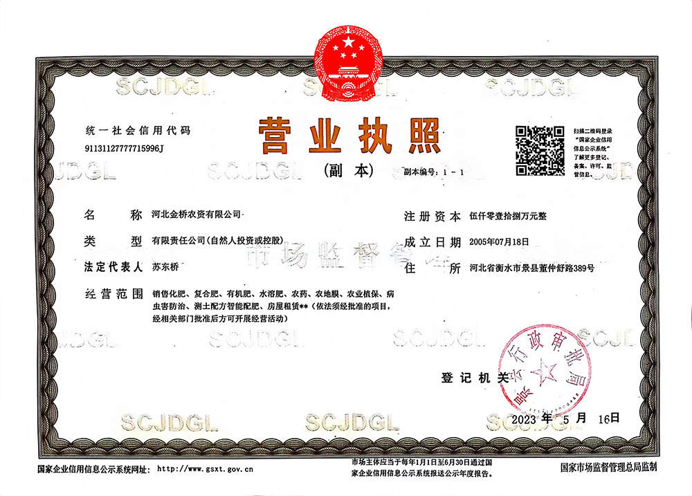 河北金橋農資有限公司是景縣供銷社下屬的股份制企業,公司注冊資金5018萬元,倉儲面積15萬平方米。經營范圍:化肥、農藥、農地膜、無人機銷售、維修、無人機飛手培訓及飛防作業,測土配方智能配肥等業務。公司下設景州、吳橋、王瞳、龍華、滄州、衡水、河間等九個農資配送中心,二個化肥經營部......
